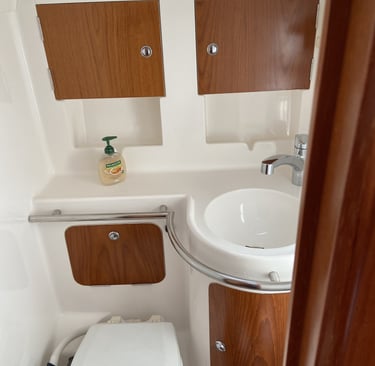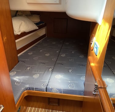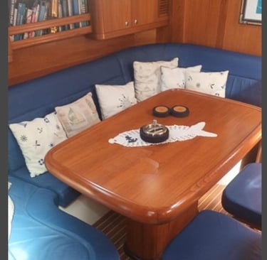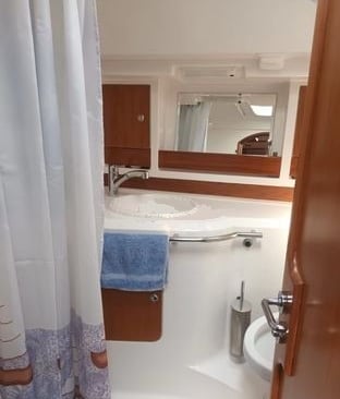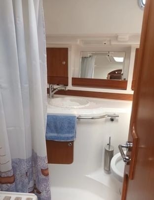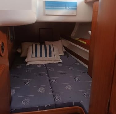 Quattro cabine, quattro bagni (tre cabine per gli ospiti). Due frigoriferi, dissalatore, macchina del ghiaccio, aria condizionata. Tender.