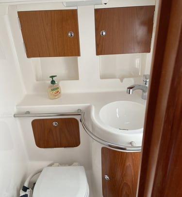 Genoa e randa avvolgibili, Winches elettrici e manuali, elica di prua, auto-pilot, bimini, sprayhood.